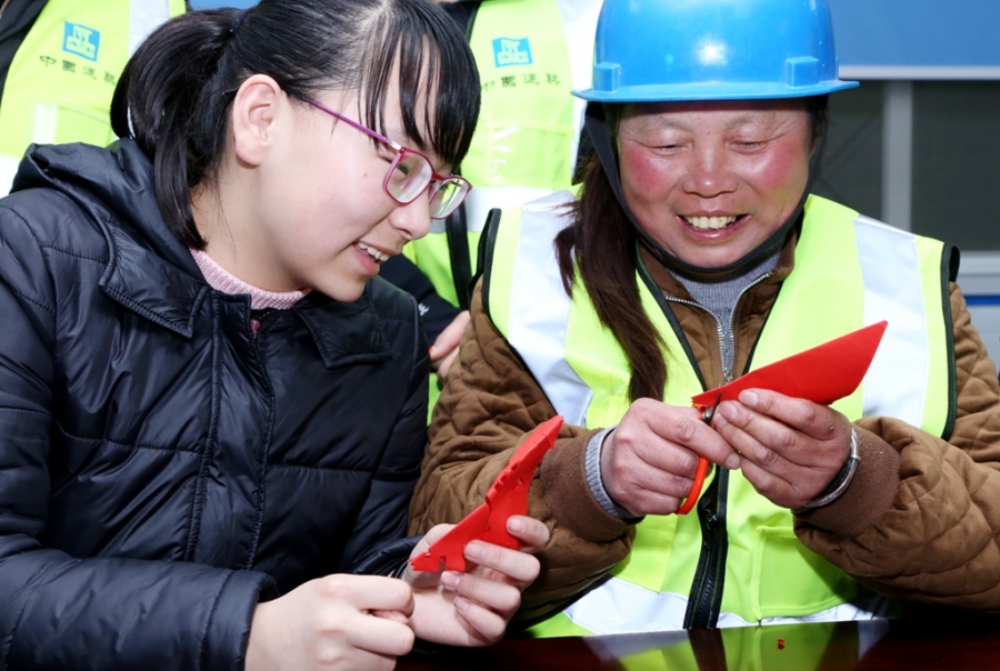 我校剪纸社团学生进工地 让农民工感受非遗文化魅力
