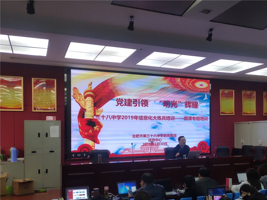 2019年3月30日,合肥市第三十八中学教育集团信息中心组织召开了集团2019年信息化大练兵—微课专题培训会,特邀安徽仰止教育有限公司技术总监刘健作为本次活动主讲,学习如何使用微课软件〈简称CM〉制作一个精美微课。来自和平校区、大通路校区、北校、南陵路分校共计200余人,齐聚和平校区北阶梯教室。