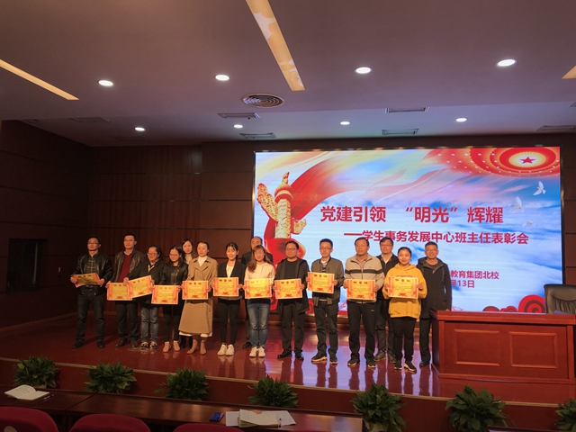 2019年11月13日下午,合肥市第三十八中学教育集团北校在一楼报告厅举行了2018-2019学年度第二学期表现优秀的先进班集体表彰大会暨班主任工作经验交流会。会议由政教处主任徐祥俊主持,出席会议的有北校负责人、副校长梁珀等领导班子及七、八、九年级全体教师。