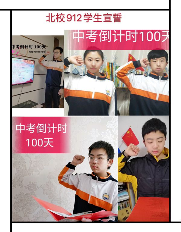 中考“百日誓师”活动在学生们的宣誓声中拉开了帷幕,所有同学跨越时空的阻隔,同一时间举起右拳,庄重宣誓:“新冠疫情,我们不怕,因为我们心中有梦;单调乏味,我们无畏,因为我们志存高远……为求圆梦,立此誓言。心无旁鹜,唯学是先……”铿锵的誓言,燃烧着青春的理想,荡漾着拼搏的决心,坚定着中考必胜的信心。