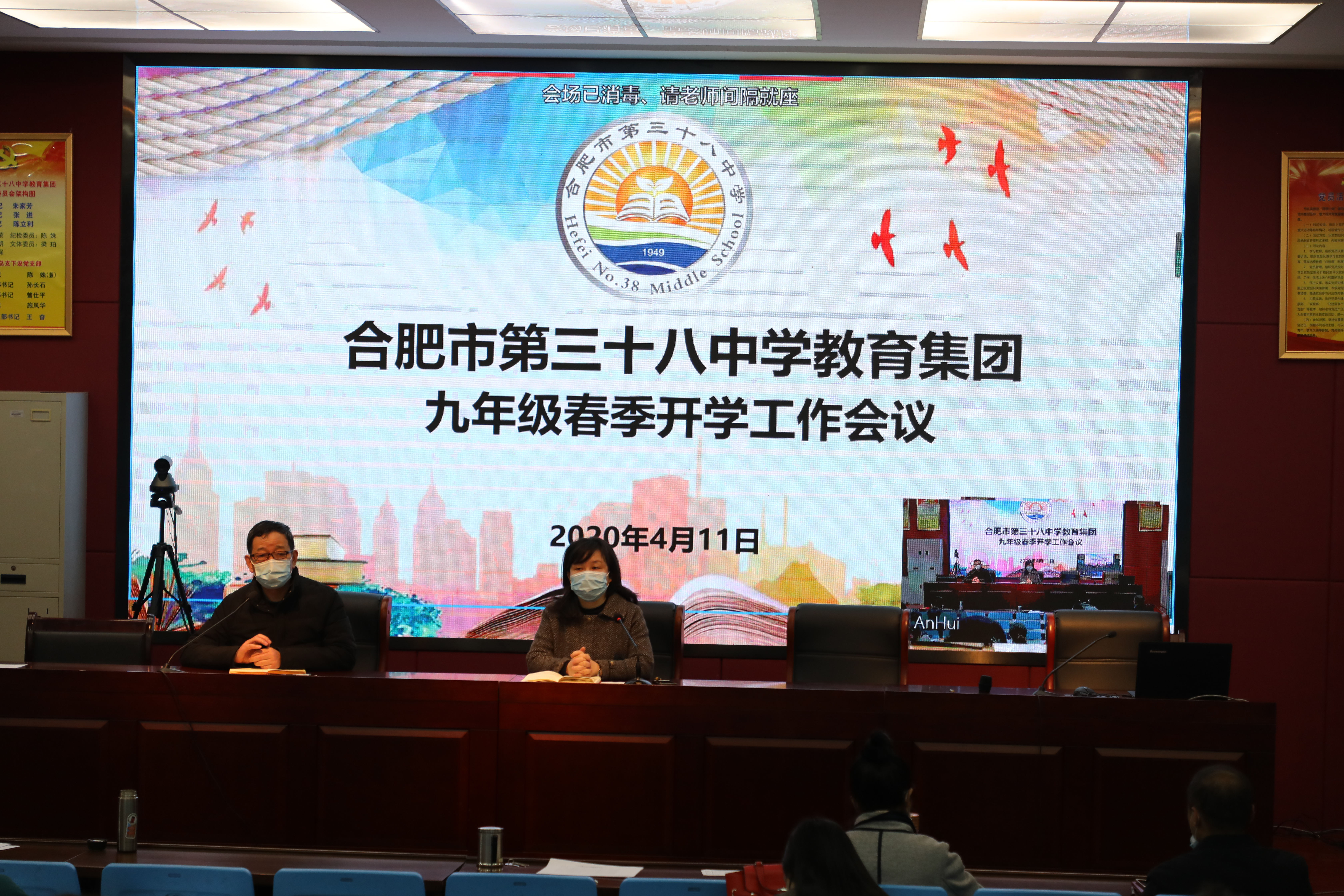 4月11日上午,合肥市第三十八中学教育集团召开了九年级春季开学工作会议。集团采用视频在线的方式为北校同步直播了会议,近140名九年级教师参会,全力保障近1600名初三学生安全返校。