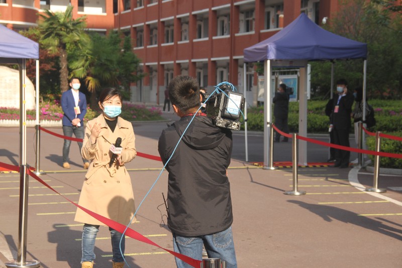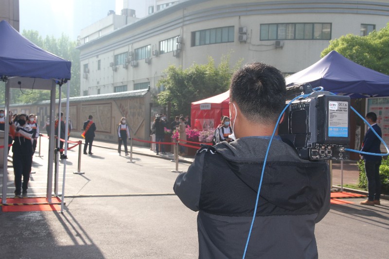 4月20日上午,中央电视台记者一行6人选点合肥市第三十八中学教育集团和平校区,直播安徽省非毕业班学生复课。首档直播节目7点35分在央视财经频道《第一时间》电视现场播出。午间13点到14点又进行了一个小时左右的央视新闻客户端新媒体连线直播。集团负责人陈立利校长全程进行了解说。