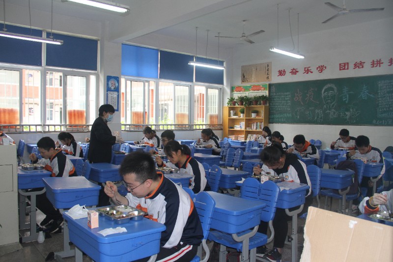 4月20日清晨,太阳还未升起时,央视财经频道的卫星直播车已悄然停驻在了集团和平校区,所有直播器材都已架设安装完毕。七点半,央视财经频道《第一时间》栏目连线了央视驻合肥的主持人,开始视频直播集团的开学复课情况。镜头中,和平校区的学生们身穿校服,佩戴着由学校免费配发的口罩,正排列队伍、保持间距、整齐有序地进行体温检测。校园体温检测区处矗立着两扇体温检测门,2秒钟即可检测一位学生的体温。该区域处,党员先锋岗教师手持额温枪对学生进行分流测温。每间教室里,免洗洗手液、消毒湿巾、体温计等防疫物资一应俱全。教室内还设置了消毒通风记录本、晨午检记录本等登记簿,每天对学生的健康信息进行登记。学生进入班级后,班主任老师还需逐一复测学生体温。课间休息时,学生或排队进入洗手间,或按照划定的区域分批开展课间活动。中午放学时,集团将学生午餐用已消毒的保温箱和餐盒统一配送到班级门口,学生排队领取,在教室内分隔就餐。午餐结束后,学生只需将餐盒盖好,放归原处即可。